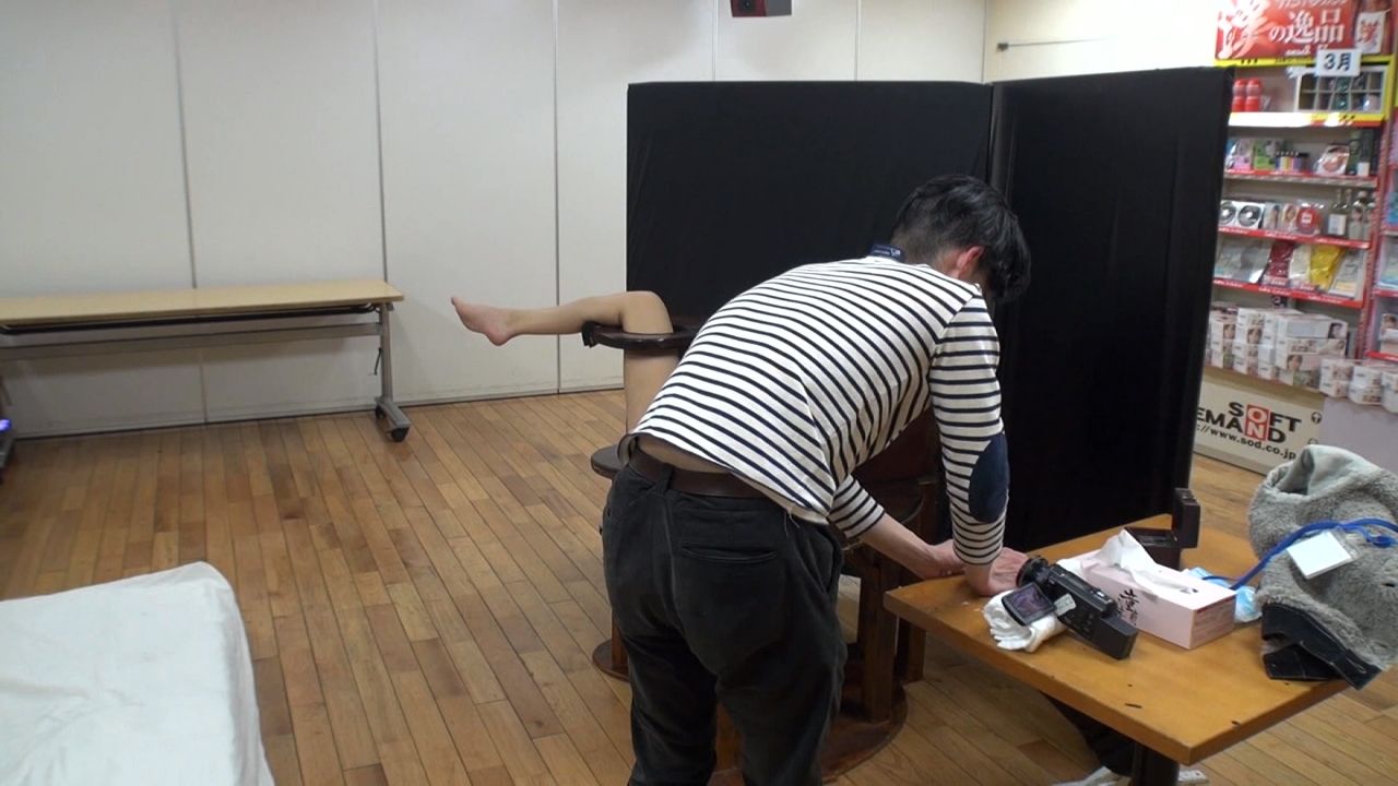 面接かと思って部屋に入ってきたタナカさん。全裸拘束された紺野ひかるを見て呆気にとられる。反応がナチュラルで良いですね。TV的なわざとらしさが無いです。部屋から出ようとするが閉じ込められています。何をしていいのかわからないので早送りされています。