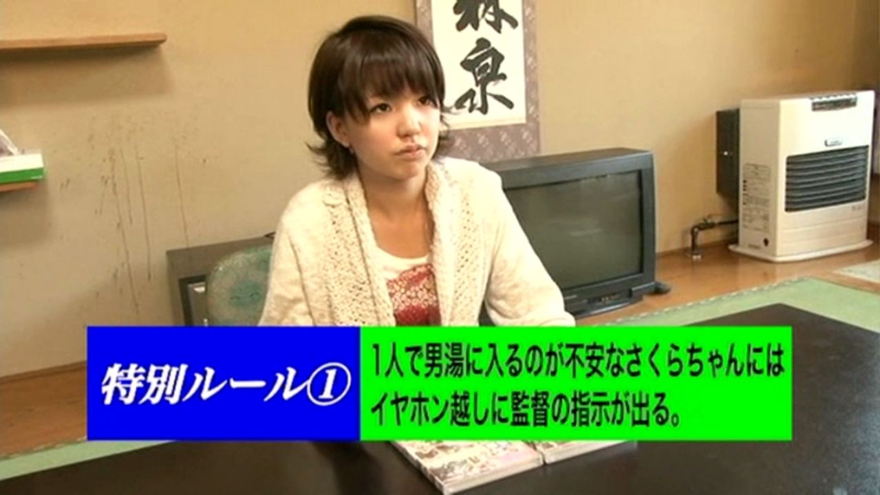タオル1枚で男湯に入る企画。ミッションに「一番、チンコが大きい男性客とSEXをする」というのがあり、あいださくらが6人の男性客を勃起させて大きさ比べをします。決勝では若い男が隆々と勃起させて、下を向いた係長のチンコを見て「係長やっぱあれっすね 重力に勝てなくなっちゃいましたね」とストレートな物言い。あいださくらも「そんな酷いこと(笑)」と戸惑っていました。>>感想