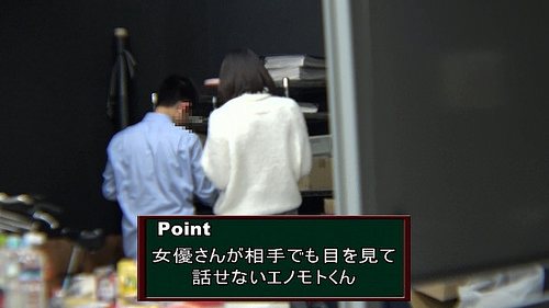 広瀬うみが童貞君と絡む企画。シーン4のエノモト君はキチックス営業部の新人。広瀬うみよりも身長が低くて痩せていて、ちょっとお姉っ気があるみたいにナヨナヨしていました。でもパンツを脱がしてチンチンを触る広瀬うみが「すごぉい」と驚くと「17cmあるんだけども」とデカチン自慢。監督に「なんの自慢だ」とつっこまれていました。>>感想