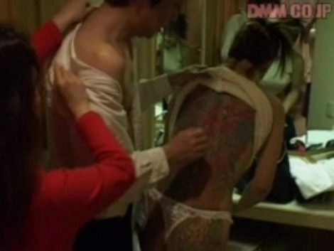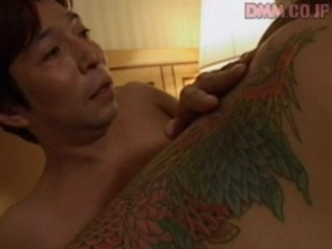 シャワーを浴びに行った桜たまきを追う松野。背中から脚まで入った刺青。