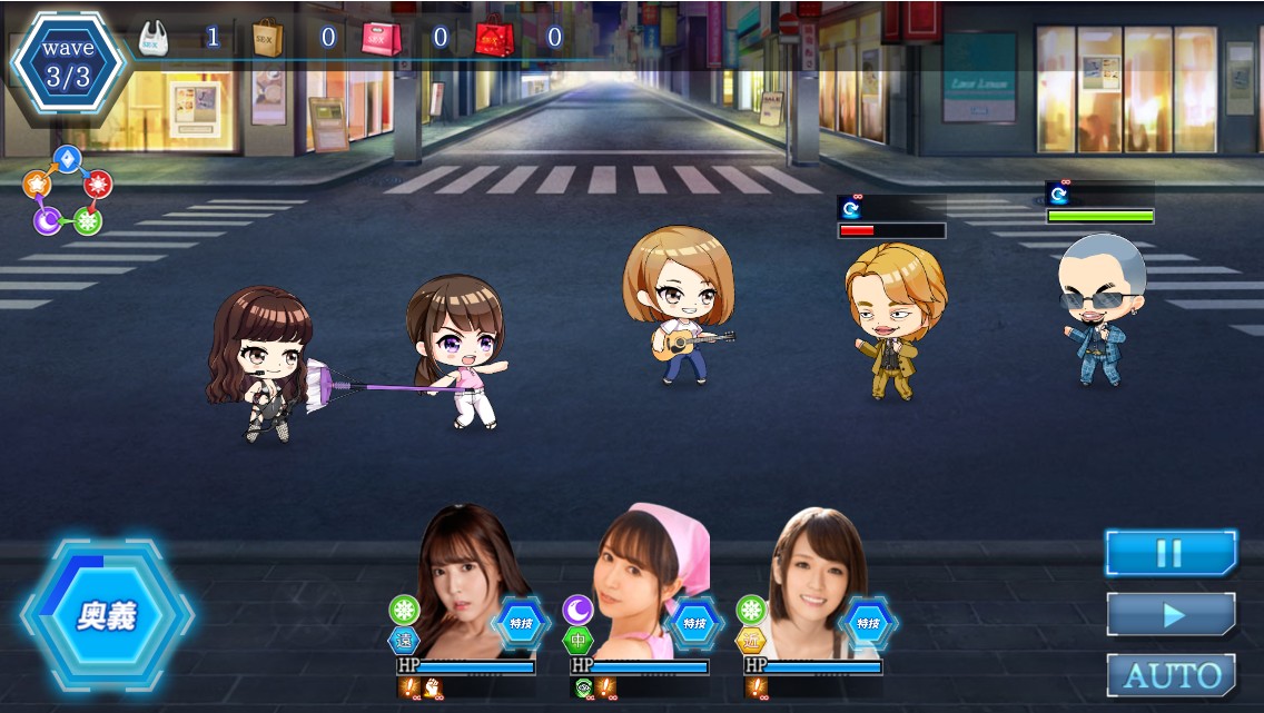 歌舞伎町でチンピラに絡まれた主人公が公園に逃げると椎名そらと再会。チンピラは椎名そらにも絡んで連れ去ろうとするけど、明日花キララと三上悠亜が助けに来る。ここで戦闘のチュートリアル。
