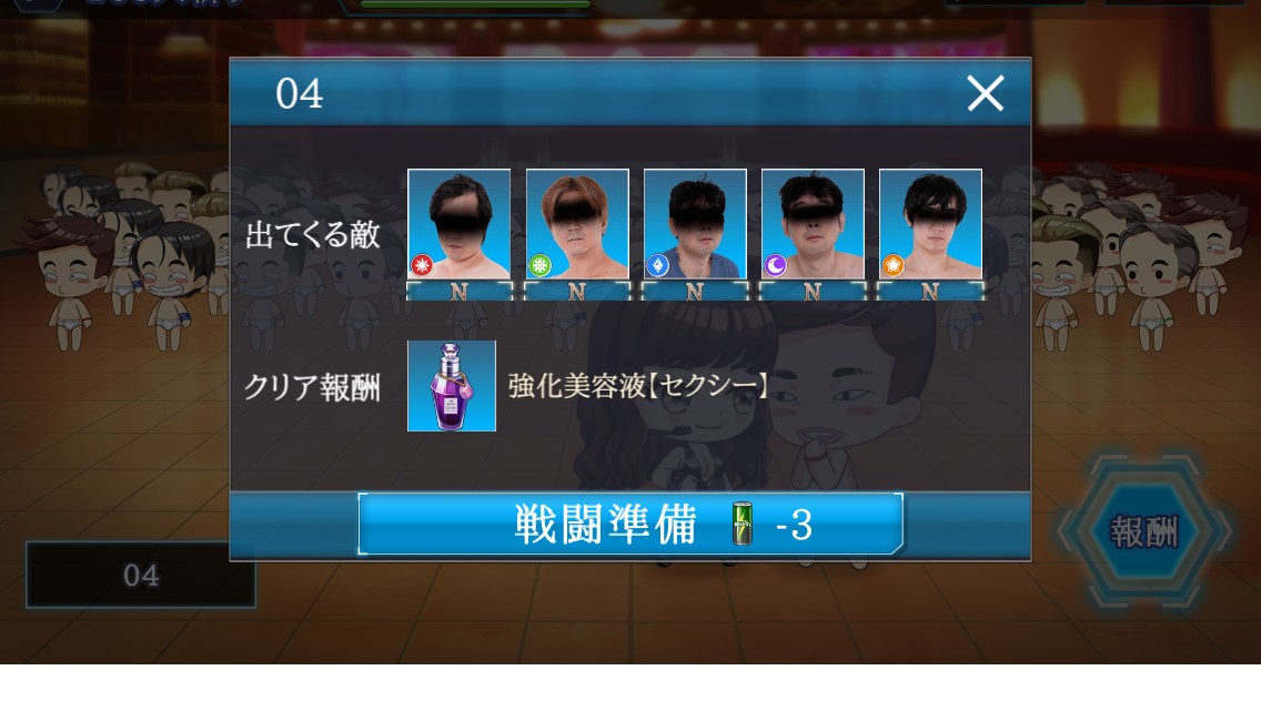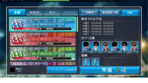 強化美容液はクエストの戦闘で入手したり、ミッション達成時の報酬で貰える。強化美容液【パーフェクト】は100ジェムで月2個限定で購入可能でした。