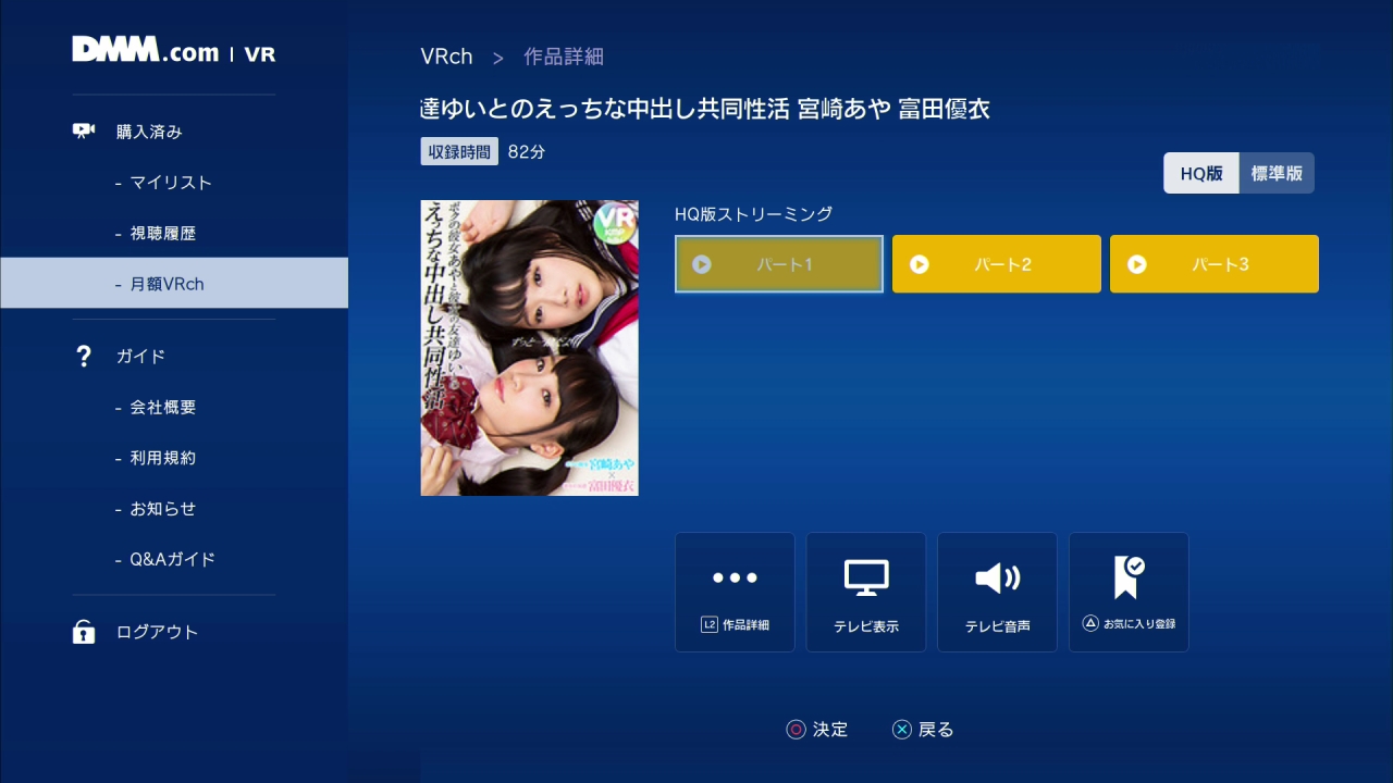 FANZAでは2018年11月6日にHQ版を追加。2019年2月7日にPSVRでもHQ版が視聴可能になりました。VR動画の古い作品は画質がとても粗いので、HQ版に対応した2018年11月6日以降の作品じゃないと画質の不満を感じやすい。そういう意味でも今のVRchは加入しやすくなったと思います。