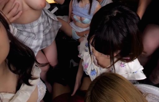 股間を触っていた松浦沙耶もお尻を見せて、強く揉む自分。キュッとした美尻。負けじと河北はるなと河北恵美も続く。