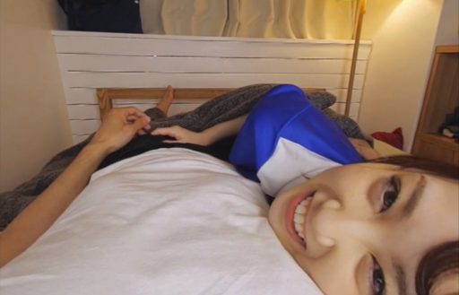 堀北わんと添い寝状態。毛布の中で電マを当てているみたい。