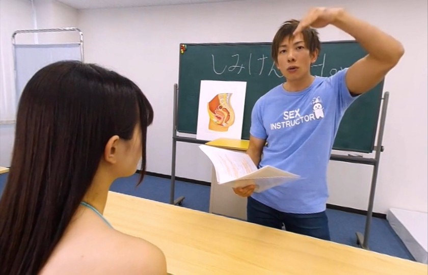 しみけんが喋っている中、美谷朱里がパンツを穿こうとするけど、しみけんにガードされて困っちゃうリアクションがかわいいです。ちゃんとした講義を聞きながら、視覚的もエロさやかわいさを楽しめる。