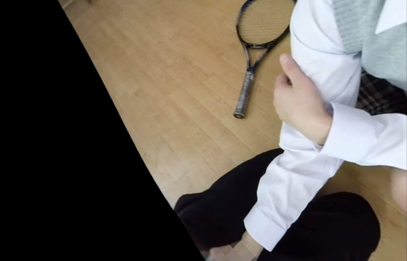 テニスウェアから制服に着替えますが、下着もビチョビチョということで、全裸になって替えの下着に着替える。