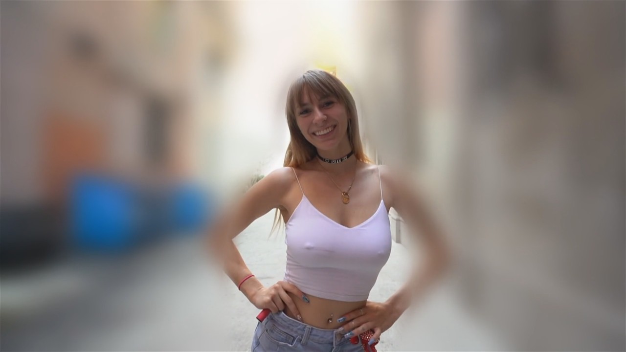 車が多い通りなのに躊躇なくおっぱいを出して、