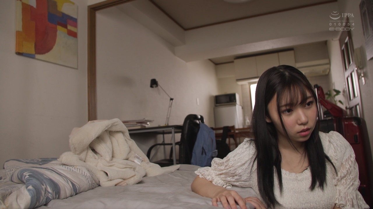 翌朝、男が目を覚ますと、布団に潜り込んでいたさつき芽衣が朝勃ちフェラ。