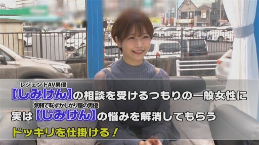 その企画は、しみけんの相談を受けるつもりの一般女性に気弱で恥ずかしがり屋の男優であるじみけんの悩みを解消してもらうドッキリ。