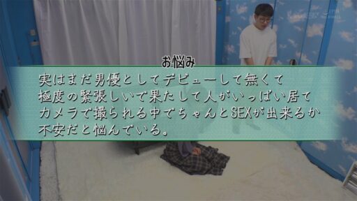 このじみけん男優、まだデビュー前。緊張しいなので撮影でセックスできるか不安という悩み。