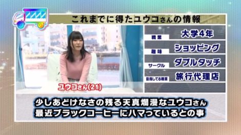21歳の大学生・ユウコさん(星崎みゆう)。監督がインタビューをして情報を聞き出す。