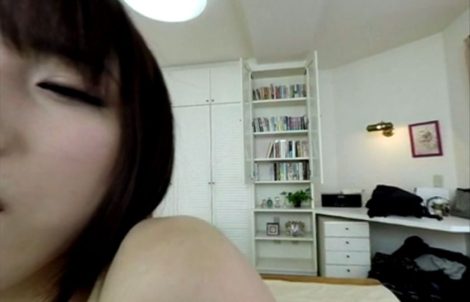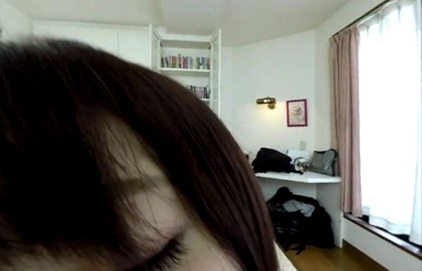 フェラ。乳首舐めとは違って違和感は覚えない。寝ている上半身が視界に入らなければ自然な体勢と視点。非VRのAVだとフェラ顔のアップを撮ることが多いですが、VRのリアルな視点も良いです。自分がリアルにフェラをされている距離感。背中や太腿にも目がいきます。