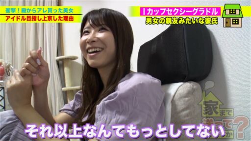 終電を逃した女性に「タクシー代を支払うので家に行ってイイですか?」という某番組のフリをし、声をかけ家まで行ってやっちゃおうという企画で、素人女性の島さんという設定ですが、三田サクラのドキュメントとして楽しめました。彼氏の話や学生時代の話はグラビア活動でのエピソードを生々しく語る。こんなに見事な体を持ちながら、彼氏はキスすらNGというのも特殊です。