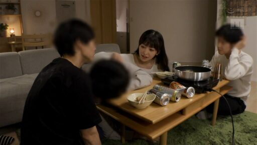 買ってきた酒を冷蔵庫に入れようとするユウタ。そこにヒナコのパンツが落ちていて状況を察する。