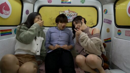 その後、友達も加わり、友達と一緒にAV女優に攻められる恥ずかしさが面白い。