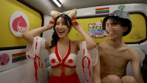 コスプレ好きということで衣装を持ってきてもらい、森沢かなが着る。