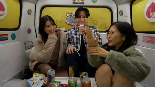 彼女が2年半いないという男をワゴン車に連れ込む。