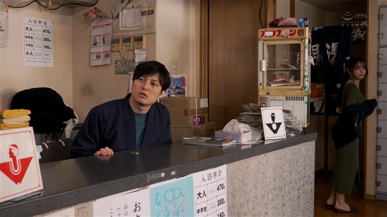 スーパー銭湯へ来た池田マリナ、番台に気付かれないように男湯へ。