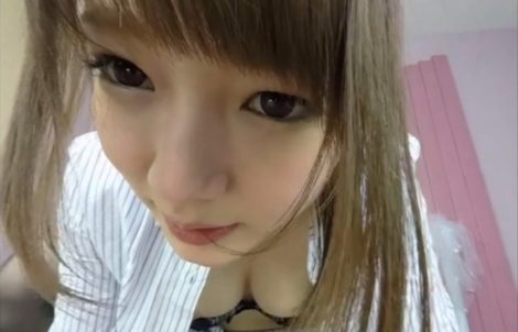 ブラをズラしてピンクの乳首。至近距離で見られます。
