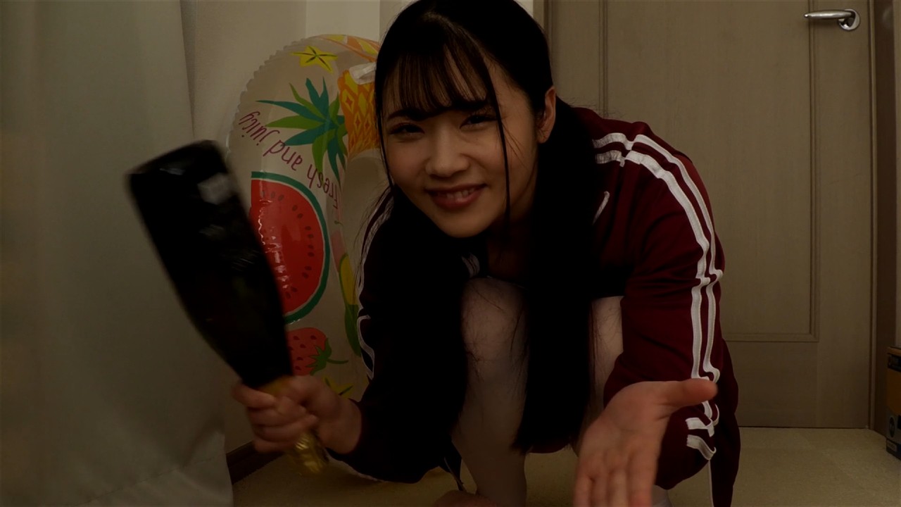 ジャージ+水着で監督の部屋に来た二葉エマ。