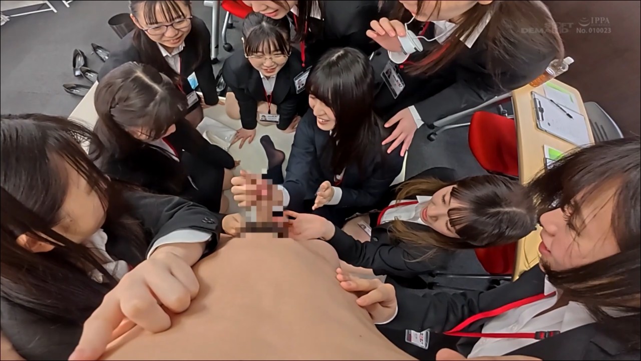 FANZA SOD女子社員試験官9名が全裸男性1名へち○ぽの勃起からザ~汁射精を手厚いサポート付きでじっくり審査 新人AV男優CFNMハーレムオーディション