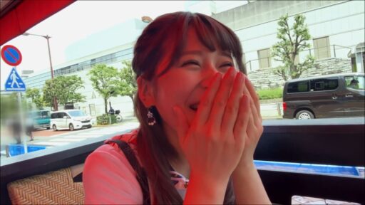 躊躇するれいちゃんを男優がグイグイ押す。