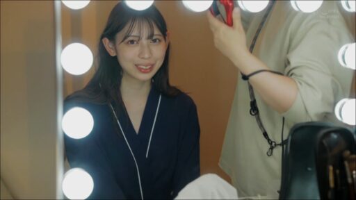 スチール撮影前のメイクシーンから。すっぴんでも美人。