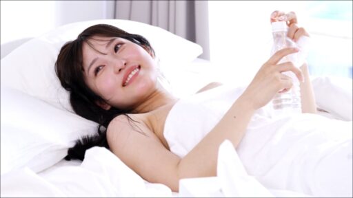 寝ている新川空に男優が近づいて、夜這い状態からのカラミ。