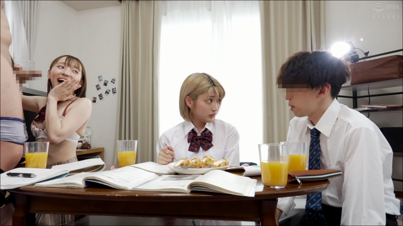 勉強会を始めて20分後、ヤリマンヤリチンコンビが勉強に飽きてセックスを始めようとする。