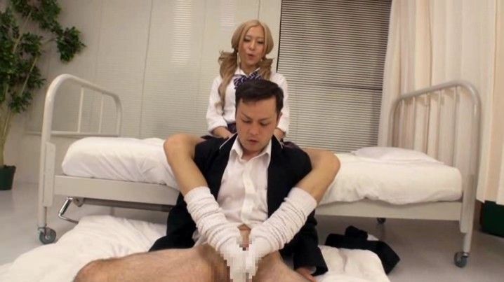 手コキの後に足コキ。