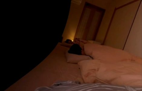 至近距離で見つめてくる。VRではお馴染みの行動ですが、今回は両サイドにそれぞれ妻と夫がいる中で、布団を被っての見つめ合い。いつもとは少し違う感覚。