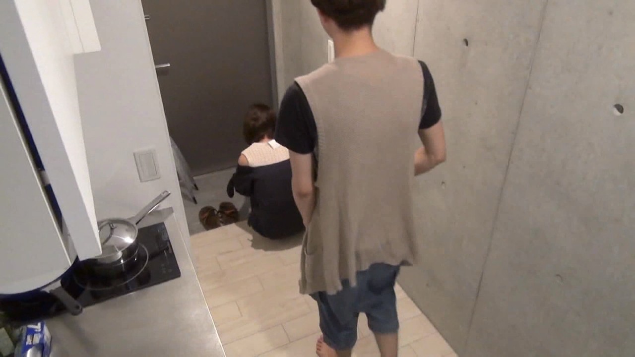 男も隣で寝て脇腹をツンツン。かかとで男を軽く蹴るかりんちゃん。