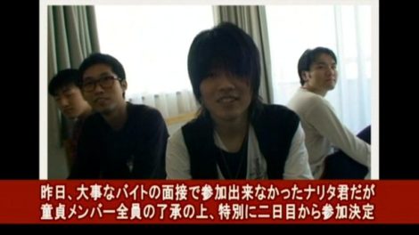 この作品はブログ等でもガチ募集をしていた企画で、出演者の方が匿名掲示板でレポートを書き込むなどもあり本物感が漂う作品。10名の童貞が選ばれたが、当日になって1人辞退、さらに現場に来て撮影機材やスタッフを見て現実を感じてビビッた1人が辞退。残ったのは8人。