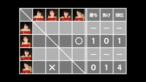 第9弾までリリースされている『ガチンコ全裸レズバトル』の記念すべき第1弾。4人の女優が総当たりでレズバトルのリーグ戦を行う。プロレス的なエンターテイメント性がある作品でブック(台本)が素晴らしい。「どうせこうなるんでしょ」と思わせておいて逆にきたりするから読めない。最終戦は、この作品のブックの魅力が詰まった1戦になっていました。