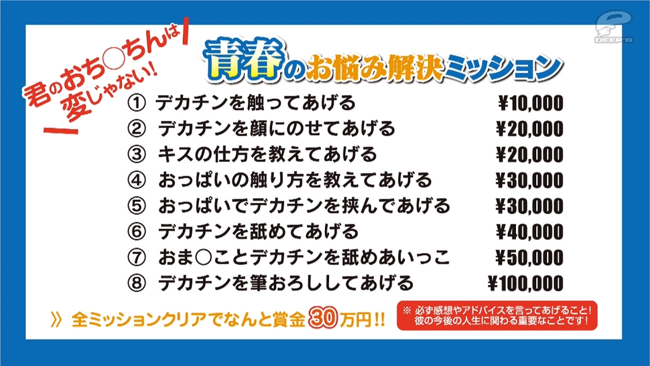 ミッション8:デカチンを筆おろししてあげる(100,000円)。