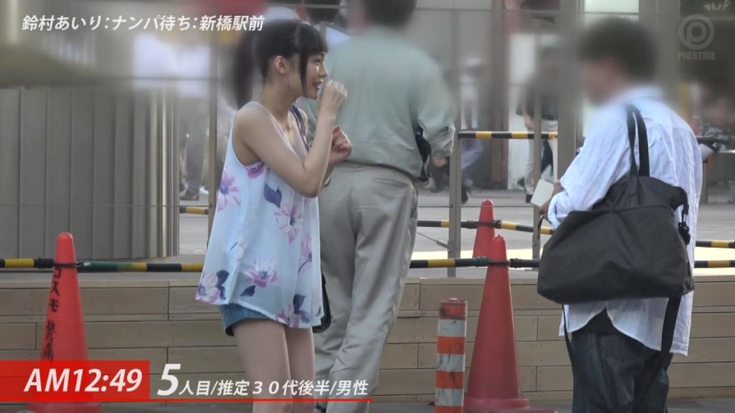 車で街中に連れて来られた鈴村あいり。2016年8月の撮影、撮影から発売まで約3ヶ月ってことですね。『ナンパ待ちドキュメント』シリーズの第4弾で、逆ナンではなくナンパ待ち。