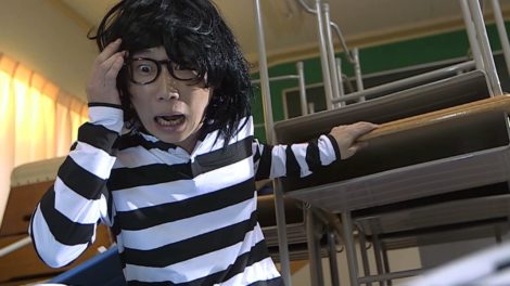 教室で机と椅子を運んでた生徒が「もうダメだ……」と倒れる。他の生徒が心配して「大丈夫か!?」「保健室連れていくか」と声をかけていたら後ろから女が近づいてくる。