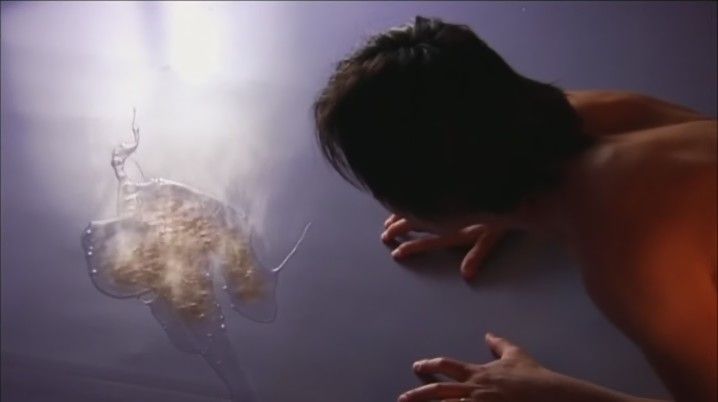 と女が豹変してペニスをばっさり。女の股間から宇野のペニスがボトリと落ちる。股間を見ると無数の牙が。そして宇野の口に落ちたペニスをつっこむ。