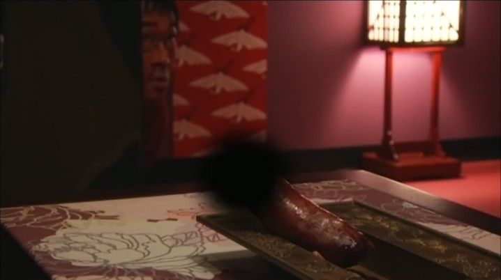 と言って、客のチンポに糊を巻いて太巻きにする。独特の感覚に喜ぶ客。「まるかじって」と上機嫌の客だが、本当に噛みつきそのままペニスを引きちぎられてしまうという衝撃のオープニング。