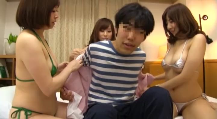 筆おろしに暴発はつきもの。2人目の童貞君は騎乗位で挿入した後、体位を変えようとした時にチンチンを見たら、既に射精済。7人目の童貞君は4P、巨根で女優陣を驚かせたものの、軽い手コキとフェラであっさり暴発。
