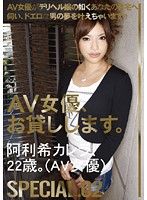 『素人娘、お貸しします。』シリーズの派生の『AV女優、お貸しします。』に阿利希キリア(阿利希カレラ)が出演。1件目、2件目に訪問した男性はいずれも暴発。素人男性にAV女優の相手は難しいかと思いきや、3件目では騎乗位でキリアが暴発(?)、4件目ではカッコ良いハゲオヤジのテクに陥落。