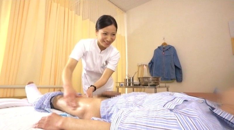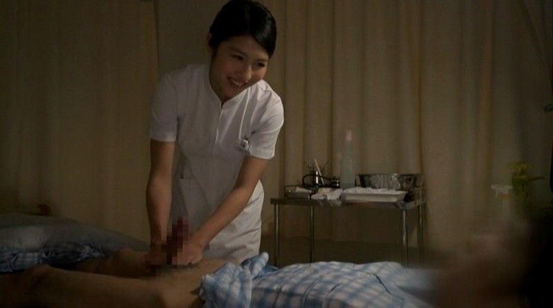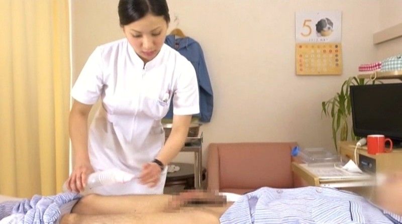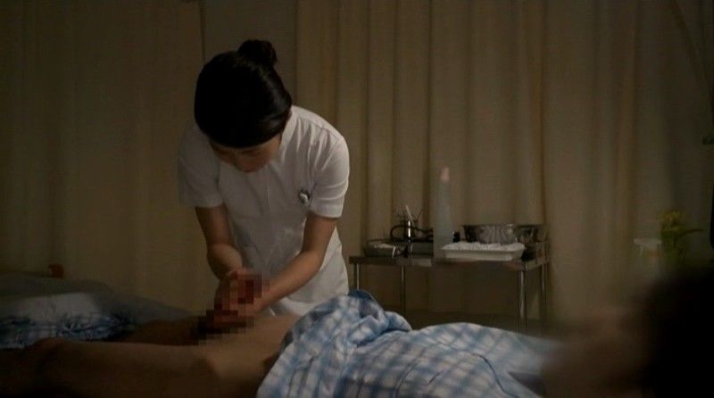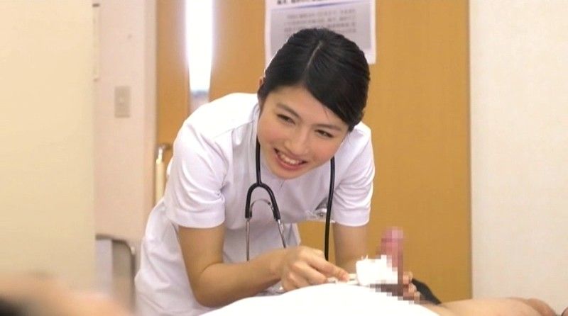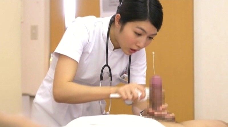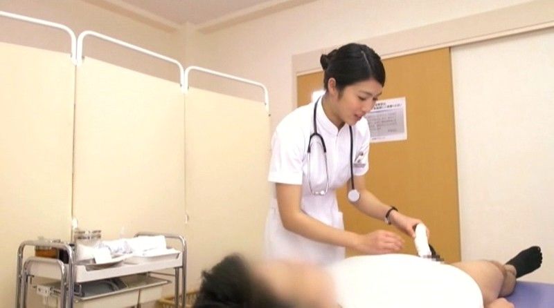 間宮ココが性行処置の準備をし、佐々木恋海(向井恋)が患者を勃起させる。