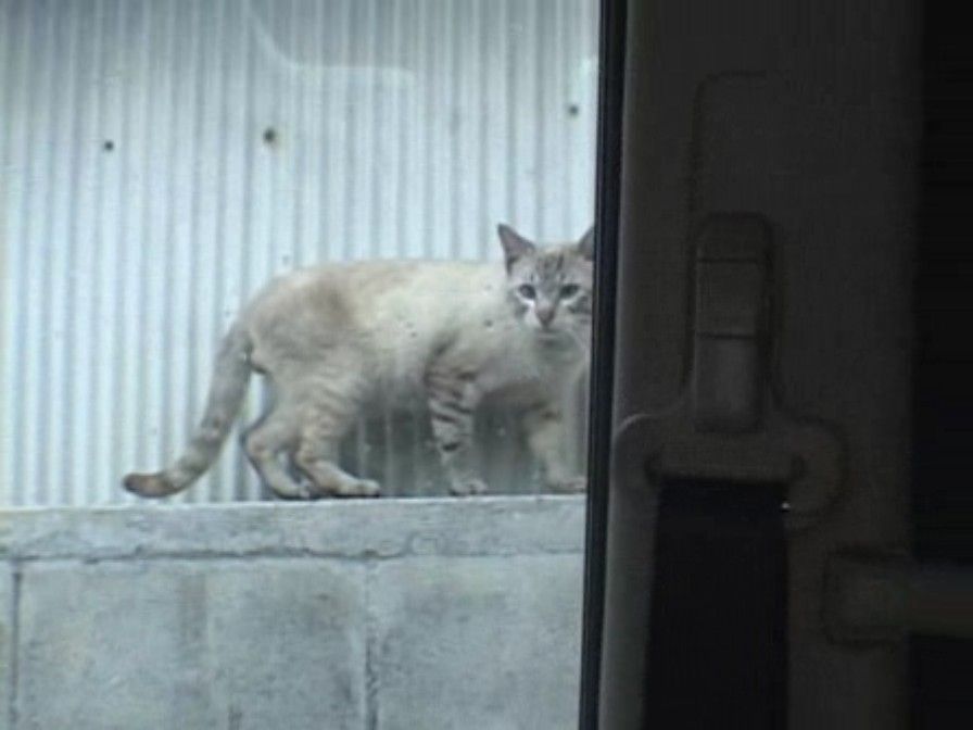 エロトークしながら手コキをしていたが、窓の外に猫が。