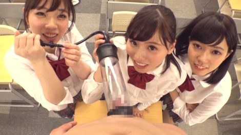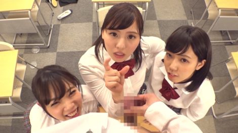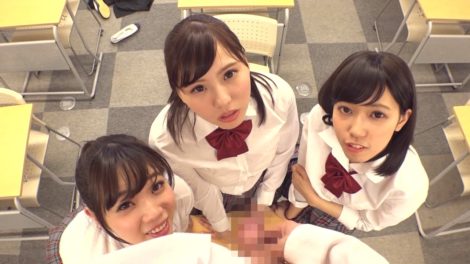 江上しほ、斉藤みゆ、藤川れいなが放課後の教室で1人の男を囲み、